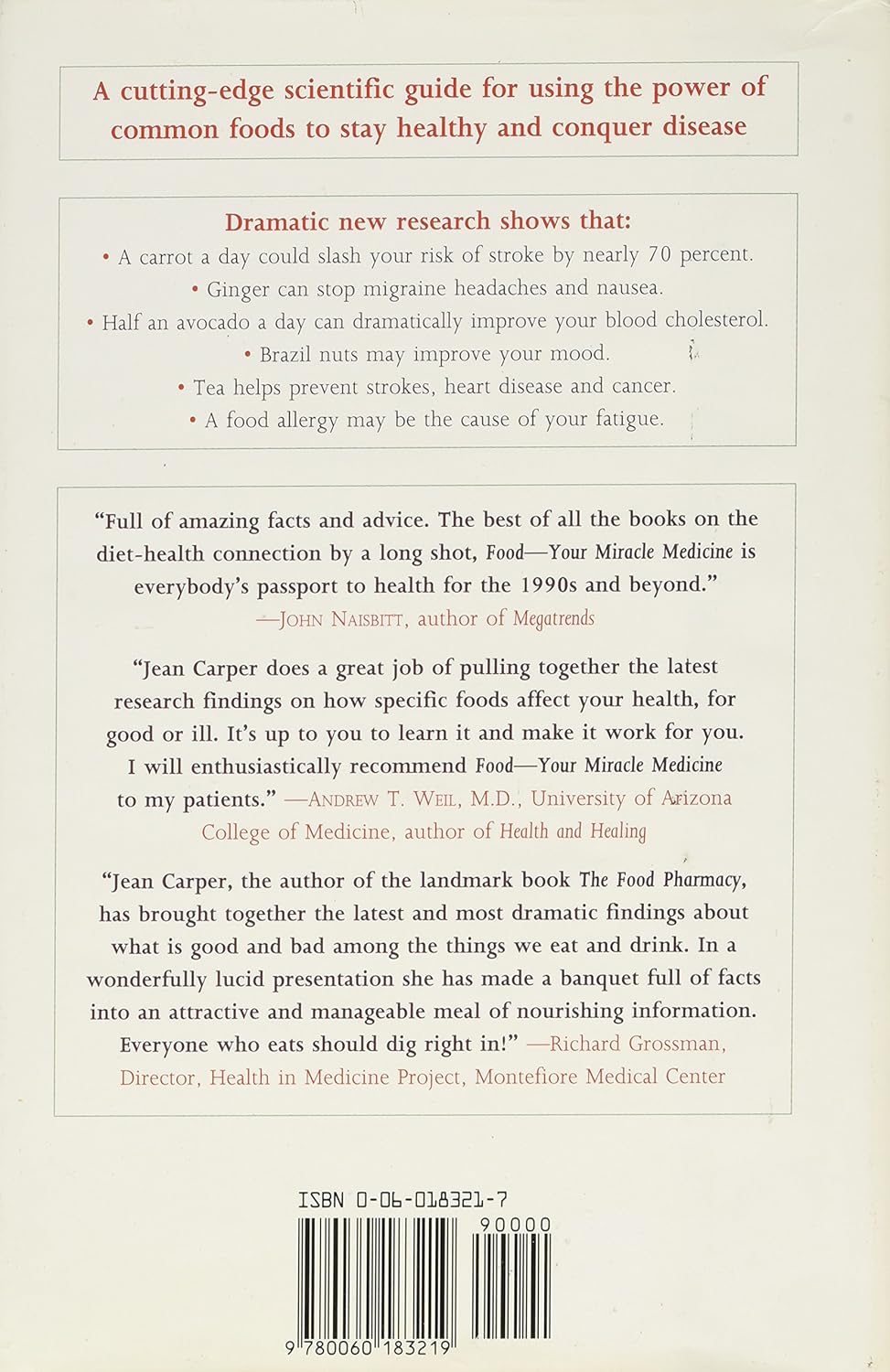 Food : Your Miracle Medecine : How Food Can Prevent And Cure Over 100 Symptoms And Problems (Jean Carper)