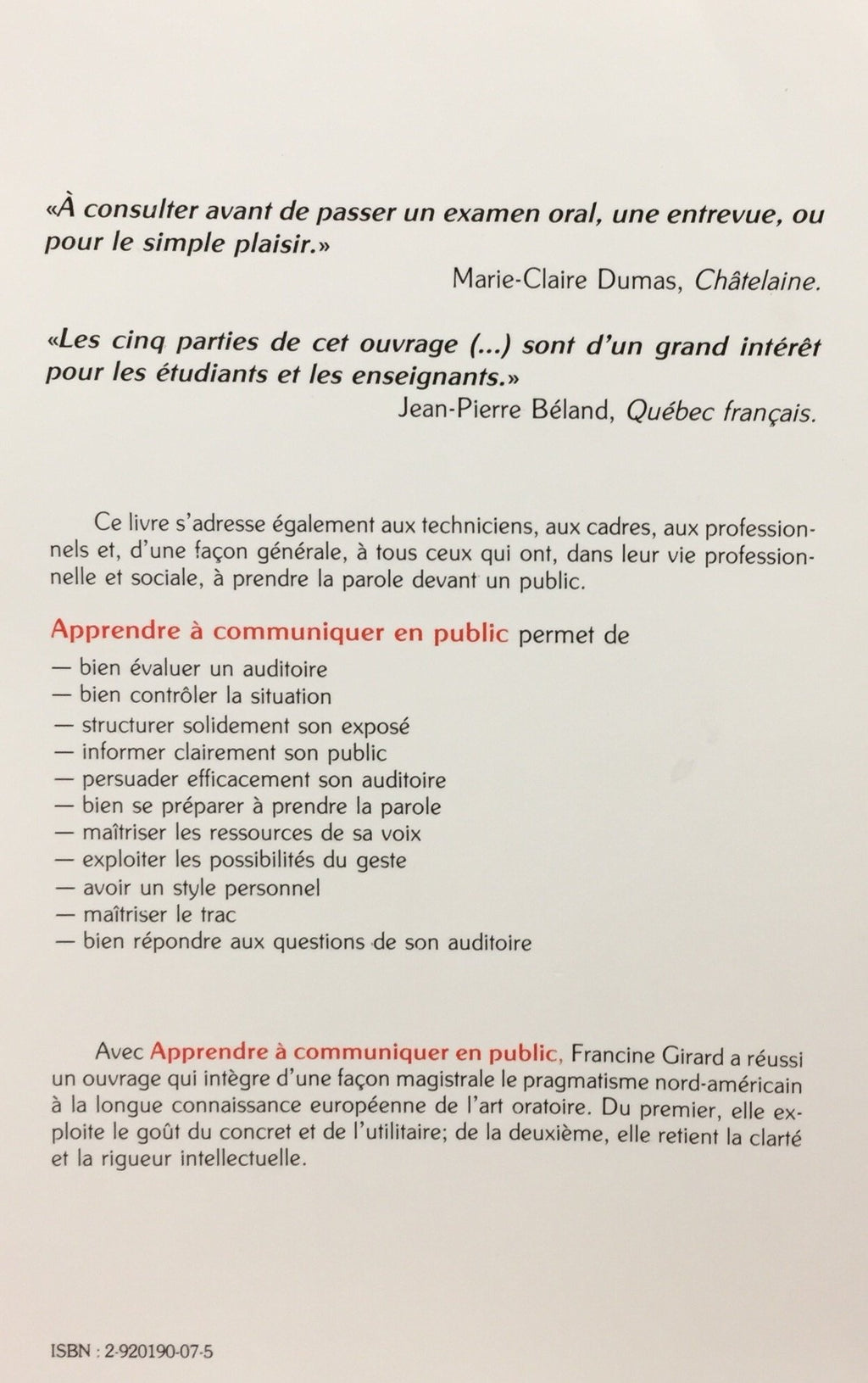 Apprendre à communiquer en public (Francine Girard)