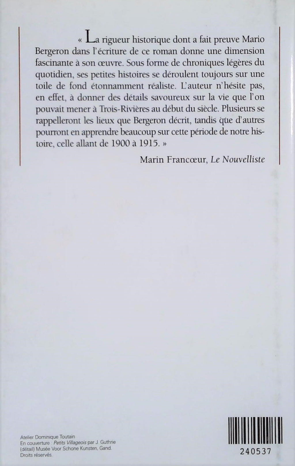 • Catégorie: Roman, Québécois